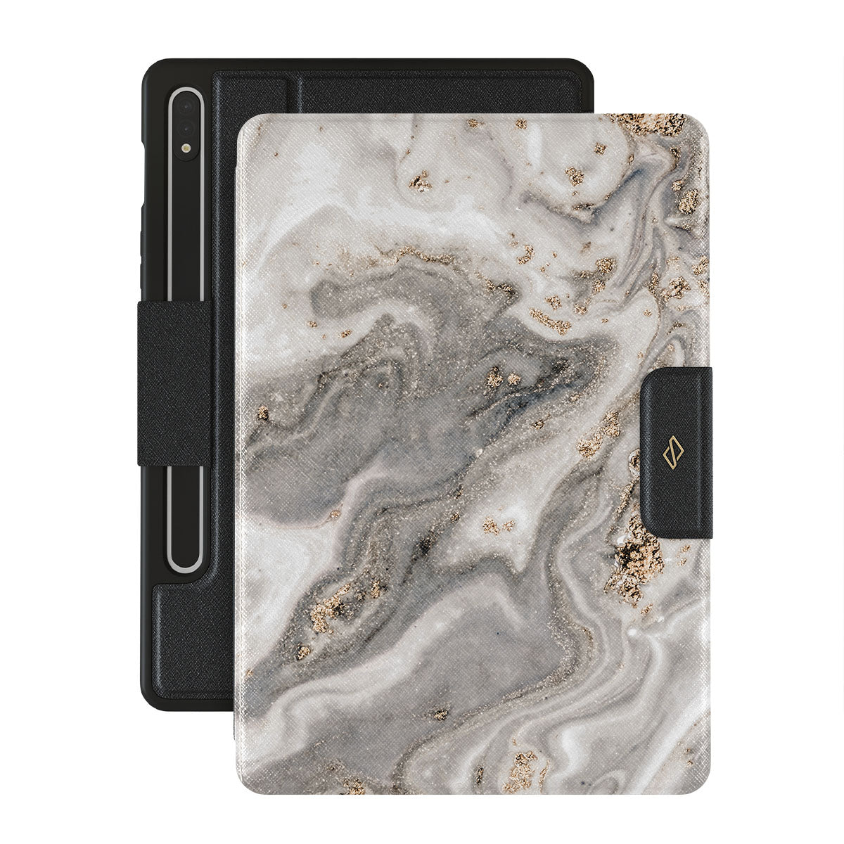 The wind outside is playing his songs. Some fear, some love, and some simply enjoy. But do not be afraid, with our grey marble Samsung Galaxy Tab S9+ folio case inspired by a beautiful snowstorm, you can have the pretty part of it without any coldness. And as the case offers heavy-duty protection, your Galaxy Tab will also be safe and sound!