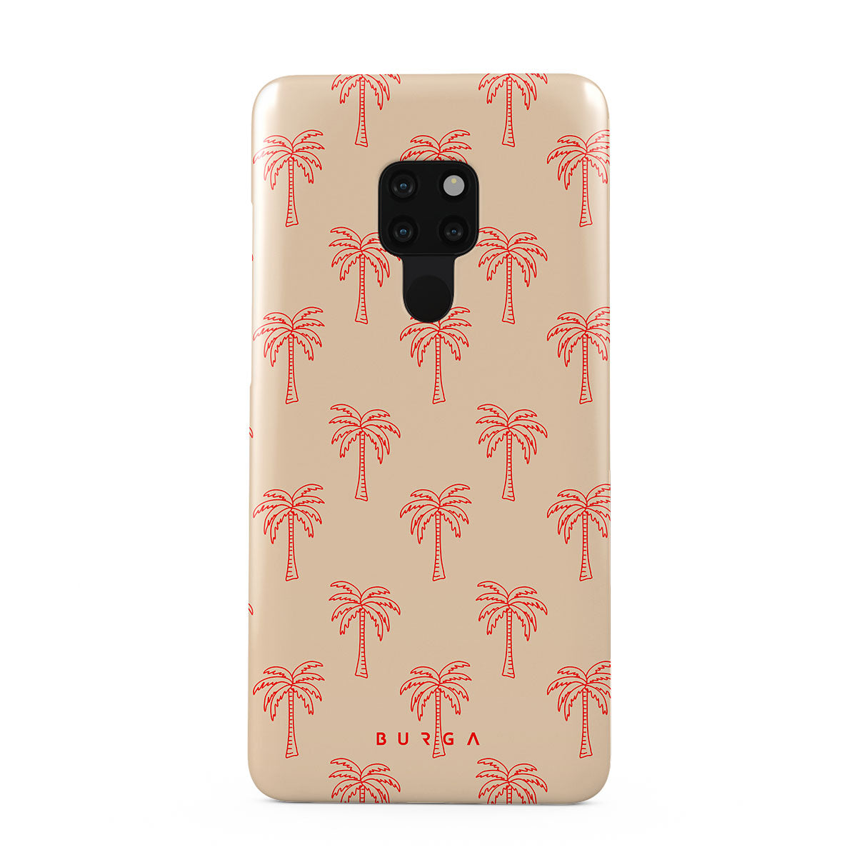 Retreat into the serene whispers of our Happy Hour design. Gentle pink palms sway on a soothing blush background, creating images of a tranquil paradise. This Huawei Mate 20 phone case is perfect for dreamers and nature lovers who seek a daily escape into tranquility.