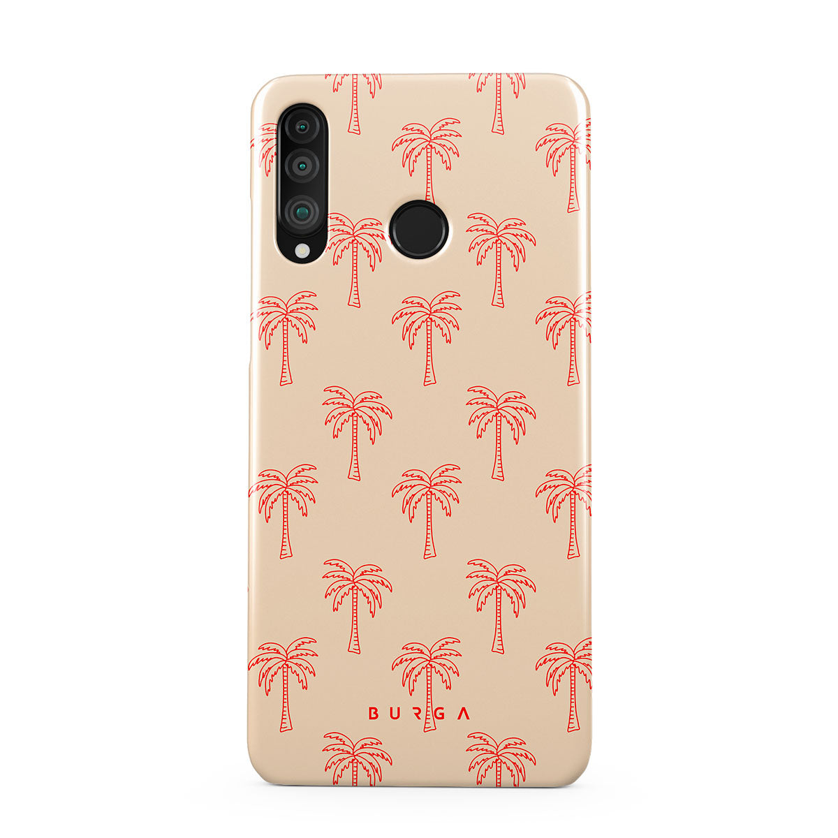 Retreat into the serene whispers of our Happy Hour design. Gentle pink palms sway on a soothing blush background, creating images of a tranquil paradise. This Huawei P30 Lite phone case is perfect for dreamers and nature lovers who seek a daily escape into tranquility.