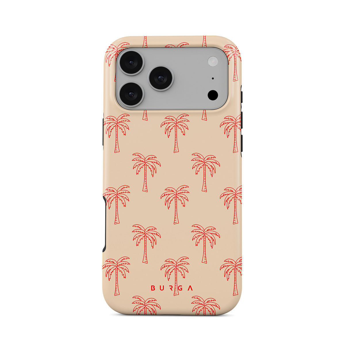 Retreat into the serene whispers of our Happy Hour design. Gentle pink palms sway on a soothing blush background, creating images of a tranquil paradise. This iPhone 17 Pro Max phone case is perfect for dreamers and nature lovers who seek a daily escape into tranquility.