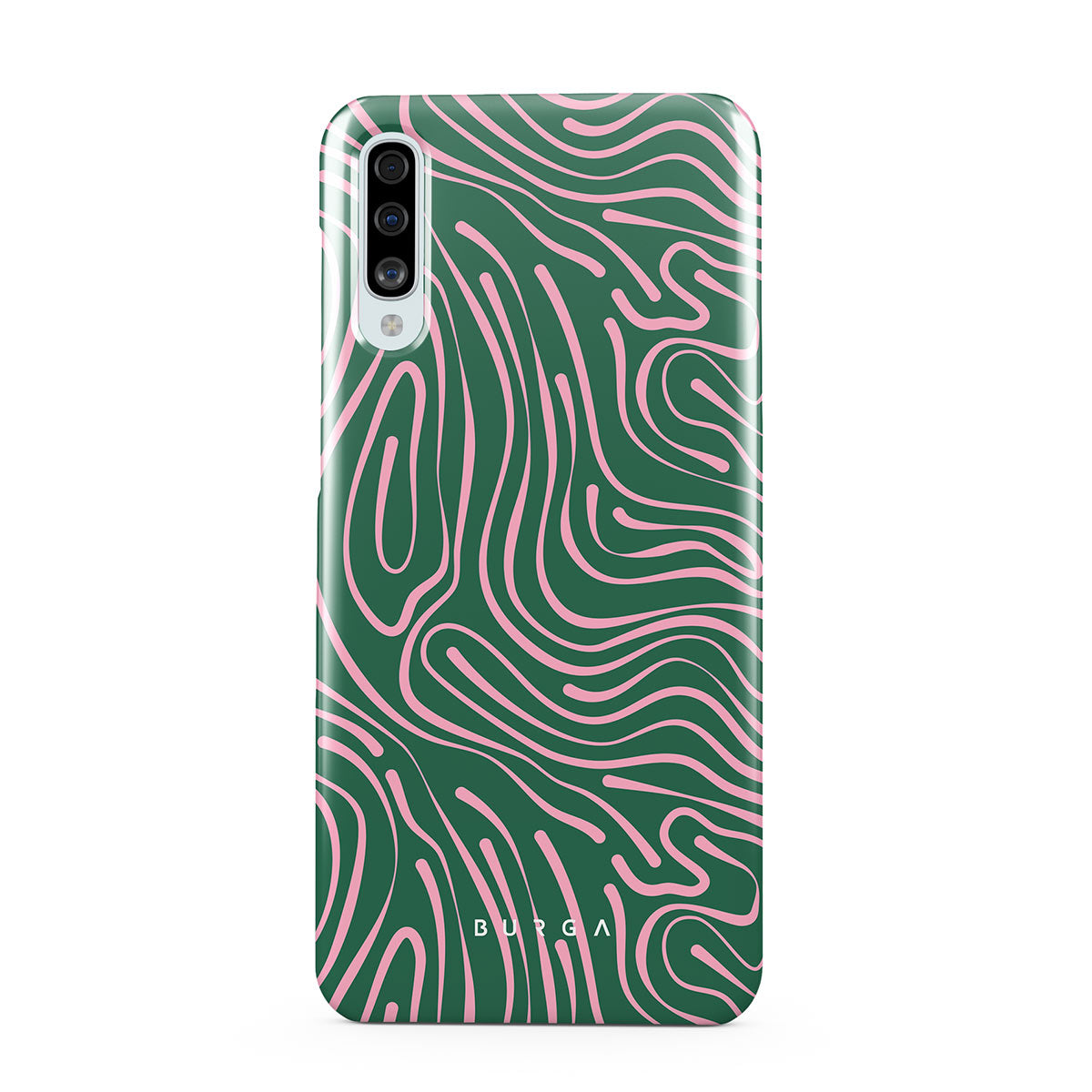 Fresh and mesmerizing, our Hawaiian Breeze Samsung Galaxy A50 phone case design combines a pastel pink wavy pattern with a crisp green background creating a refreshing look. The abstract pattern will indeed become a star in your accessorizing game, while the phone case will keep your device protected at all times!