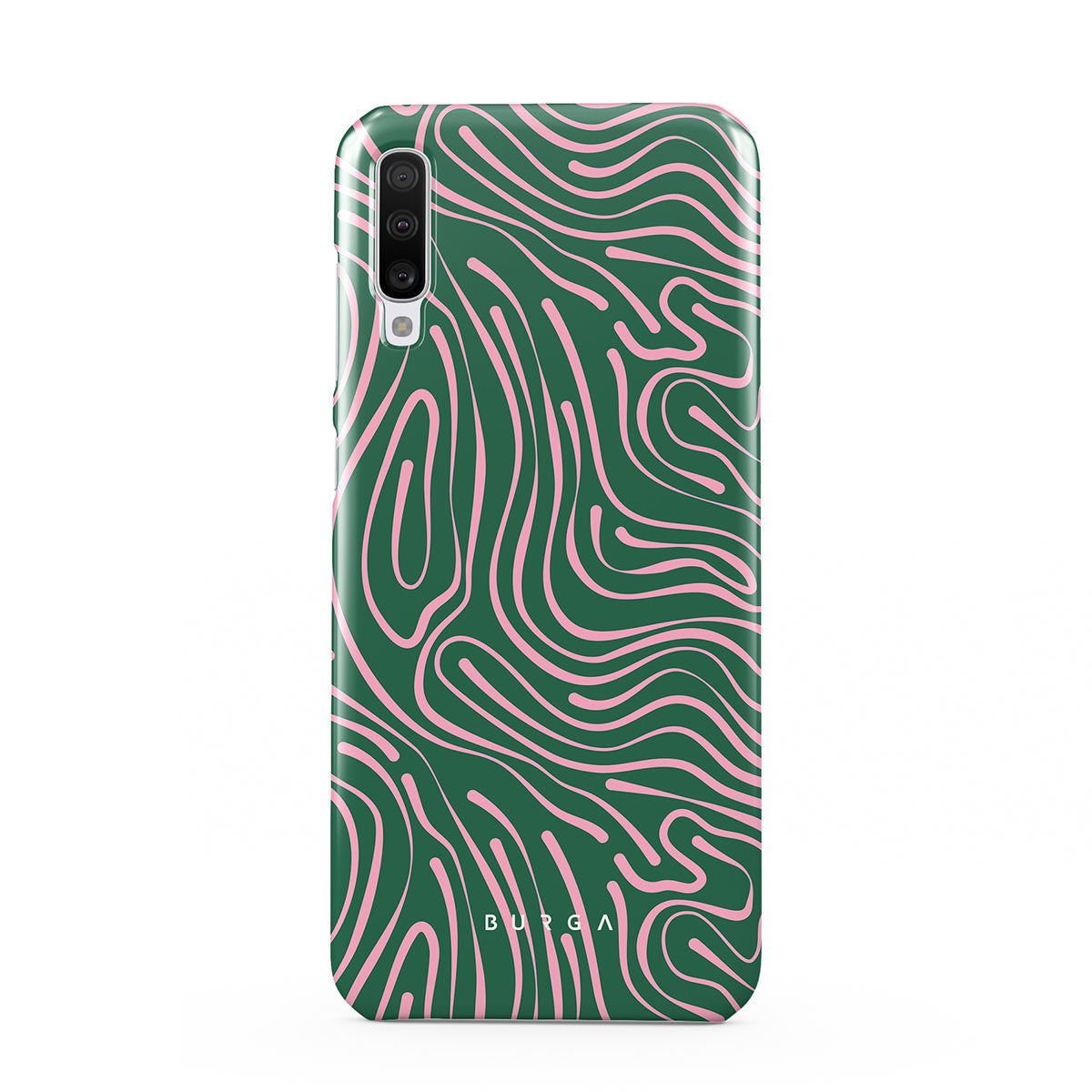 Fresh and mesmerizing, our Hawaiian Breeze Samsung Galaxy A70 phone case design combines a pastel pink wavy pattern with a crisp green background creating a refreshing look. The abstract pattern will indeed become a star in your accessorizing game, while the phone case will keep your device protected at all times!