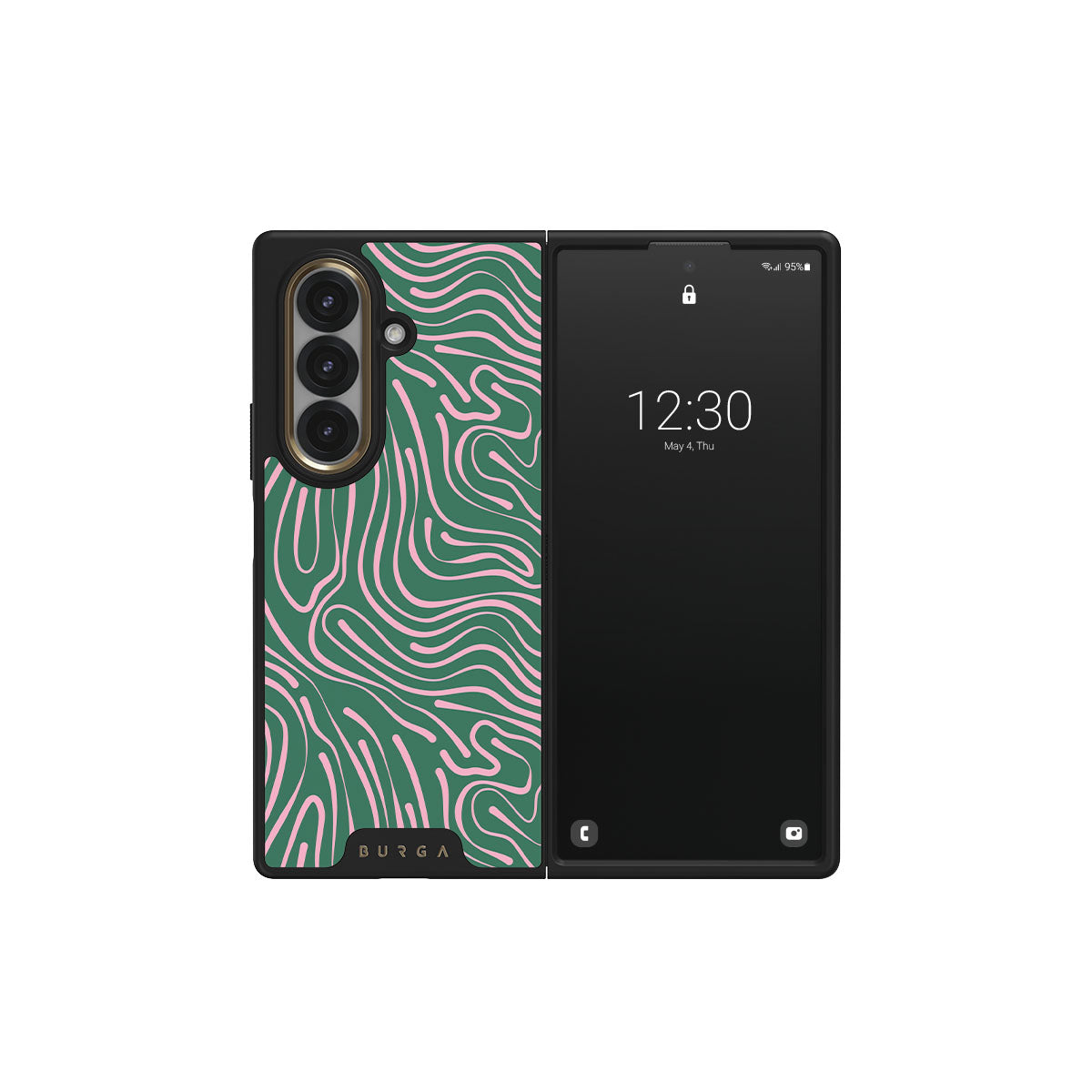 Fresh and mesmerizing, our Hawaiian Breeze Samsung Galaxy Z Fold 7 phone case design combines a pastel pink wavy pattern with a crisp green background creating a refreshing look. The abstract pattern will indeed become a star in your accessorizing game, while the phone case will keep your device protected at all times!
