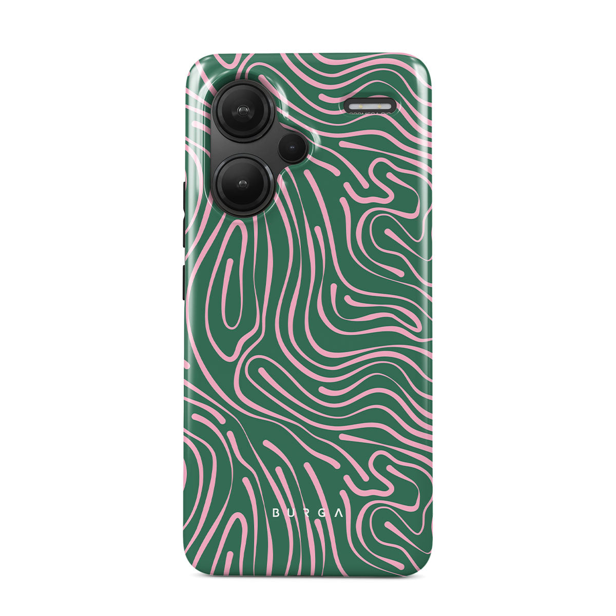 Fresh and mesmerizing, our Hawaiian Breeze Xiaomi Redmi Note 13 Pro+ 5G phone case design combines a pastel pink wavy pattern with a crisp green background creating a refreshing look. The abstract pattern will indeed become a star in your accessorizing game, while the phone case will keep your device protected at all times!