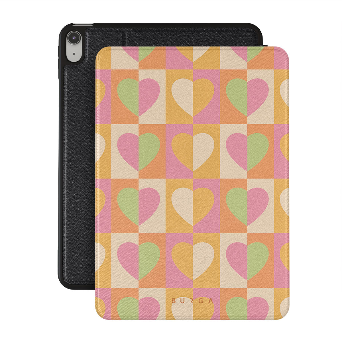 Beautifully geometrical and lovable Summer Love {iPad Model} iPad 10.9 (A16/10th Gen) folio case combines a soft pastel color scheme with a playful square heart pattern. Adding a touch of love to your style was never easier! Keep your iPad as safe as you keep your heart in a cheeky checkered protective iPad case!