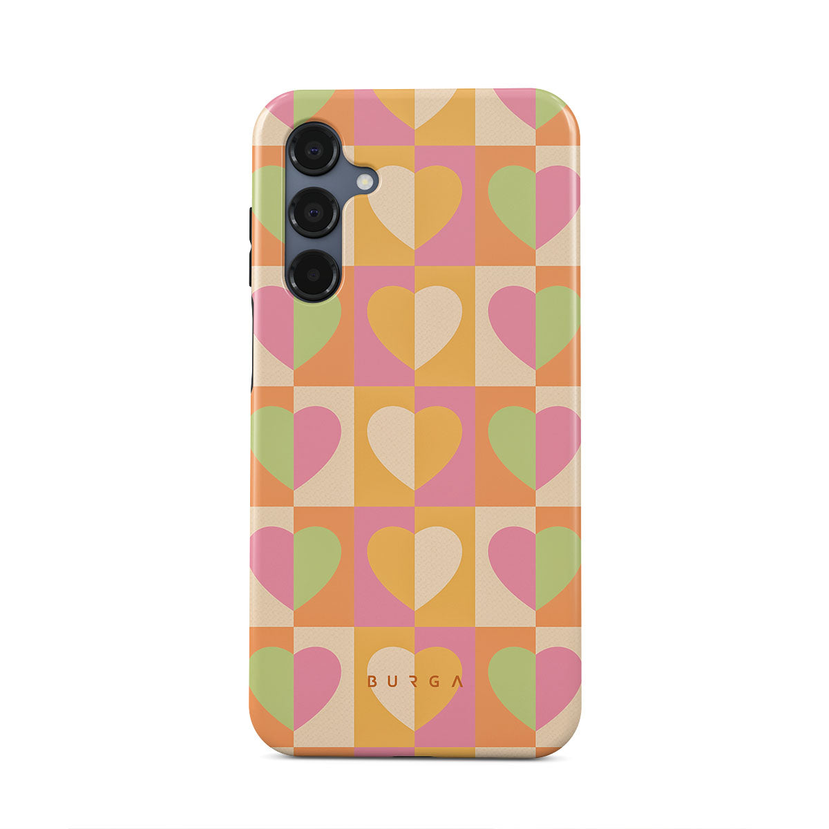 Beautifully geometrical and lovable Summer Love Samsung Galaxy A16 phone case combines a soft pastel color scheme with a playful square heart pattern. Adding a touch of love to your style was never easier! Keep your phone as safe as you keep your heart in a cheeky checkered protective phone case!