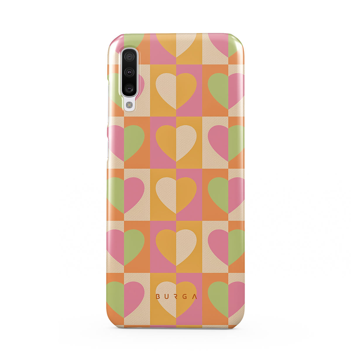 Beautifully geometrical and lovable Summer Love Samsung Galaxy A70 phone case combines a soft pastel color scheme with a playful square heart pattern. Adding a touch of love to your style was never easier! Keep your phone as safe as you keep your heart in a cheeky checkered protective phone case!