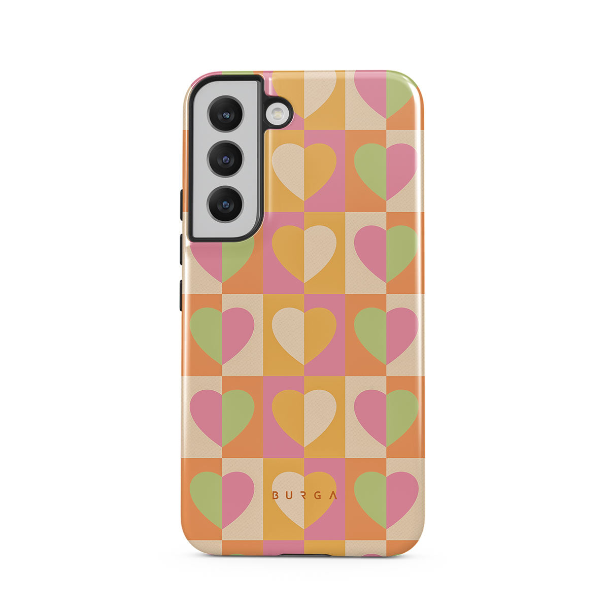 Beautifully geometrical and lovable Summer Love Samsung Galaxy S22 phone case combines a soft pastel color scheme with a playful square heart pattern. Adding a touch of love to your style was never easier! Keep your phone as safe as you keep your heart in a cheeky checkered protective phone case!