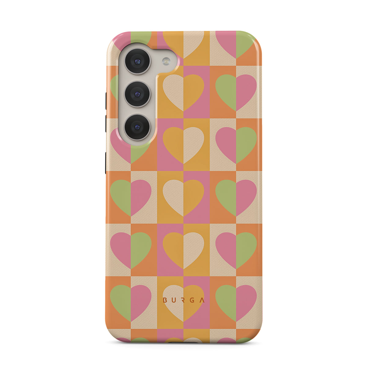 Beautifully geometrical and lovable Summer Love Samsung Galaxy S23 Plus phone case combines a soft pastel color scheme with a playful square heart pattern. Adding a touch of love to your style was never easier! Keep your phone as safe as you keep your heart in a cheeky checkered protective phone case!