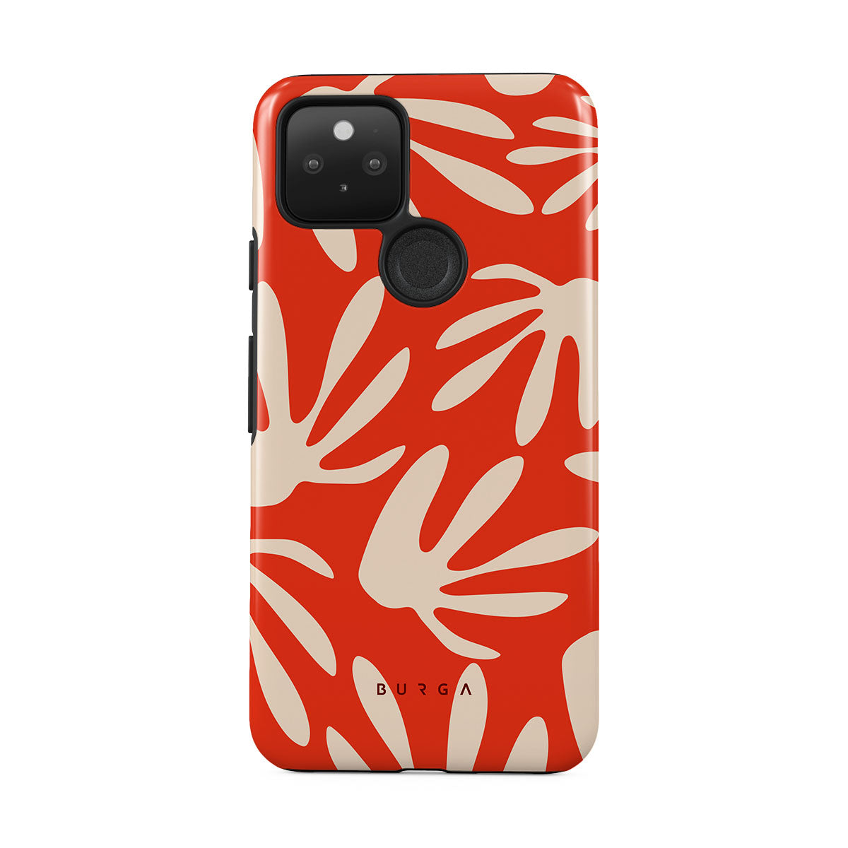 Unfolding the untamed allure of a summer sunset, this design boasts a vivid red background that sets your spirit of adventure aflame. Sprinkled across this fierce backdrop, lines of radiance dance playfully. Experience the warmth of passion and the sparkle of joy in the palm of your hand with our Heatwave Google Pixel 5 phone case.