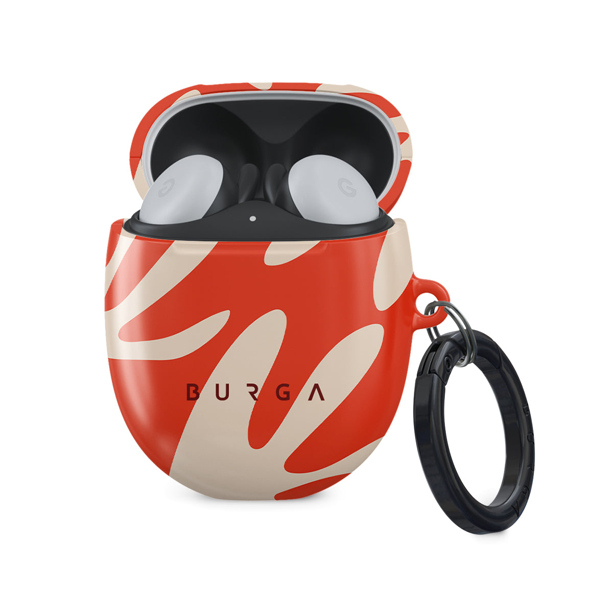 Unfolding the untamed allure of a summer sunset, this design boasts a vivid red background that sets your spirit of adventure aflame. Sprinkled across this fierce backdrop, lines of radiance dance playfully. Experience the warmth of passion and the sparkle of joy in the palm of your hand with our Heatwave Google Pixel Buds 2 case cover.