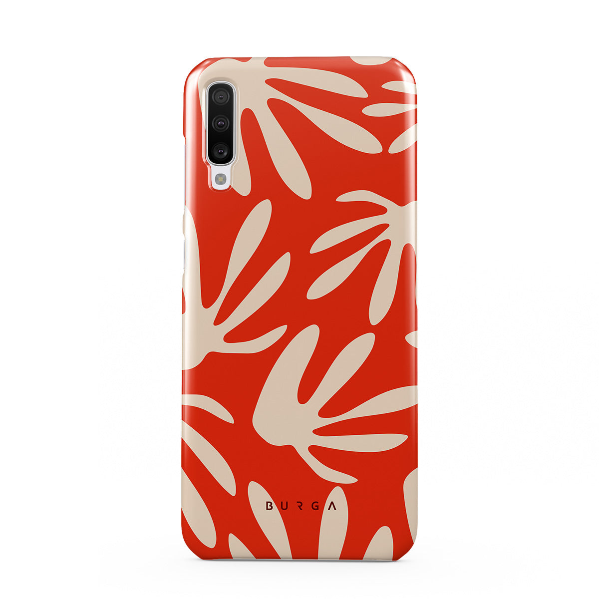 Unfolding the untamed allure of a summer sunset, this design boasts a vivid red background that sets your spirit of adventure aflame. Sprinkled across this fierce backdrop, lines of radiance dance playfully. Experience the warmth of passion and the sparkle of joy in the palm of your hand with our Heatwave Samsung Galaxy A70 phone case.