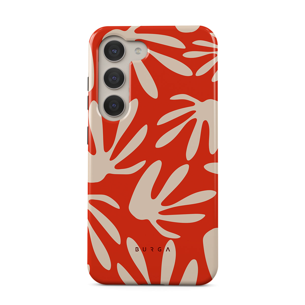 Unfolding the untamed allure of a summer sunset, this design boasts a vivid red background that sets your spirit of adventure aflame. Sprinkled across this fierce backdrop, lines of radiance dance playfully. Experience the warmth of passion and the sparkle of joy in the palm of your hand with our Heatwave Samsung Galaxy S23 phone case.
