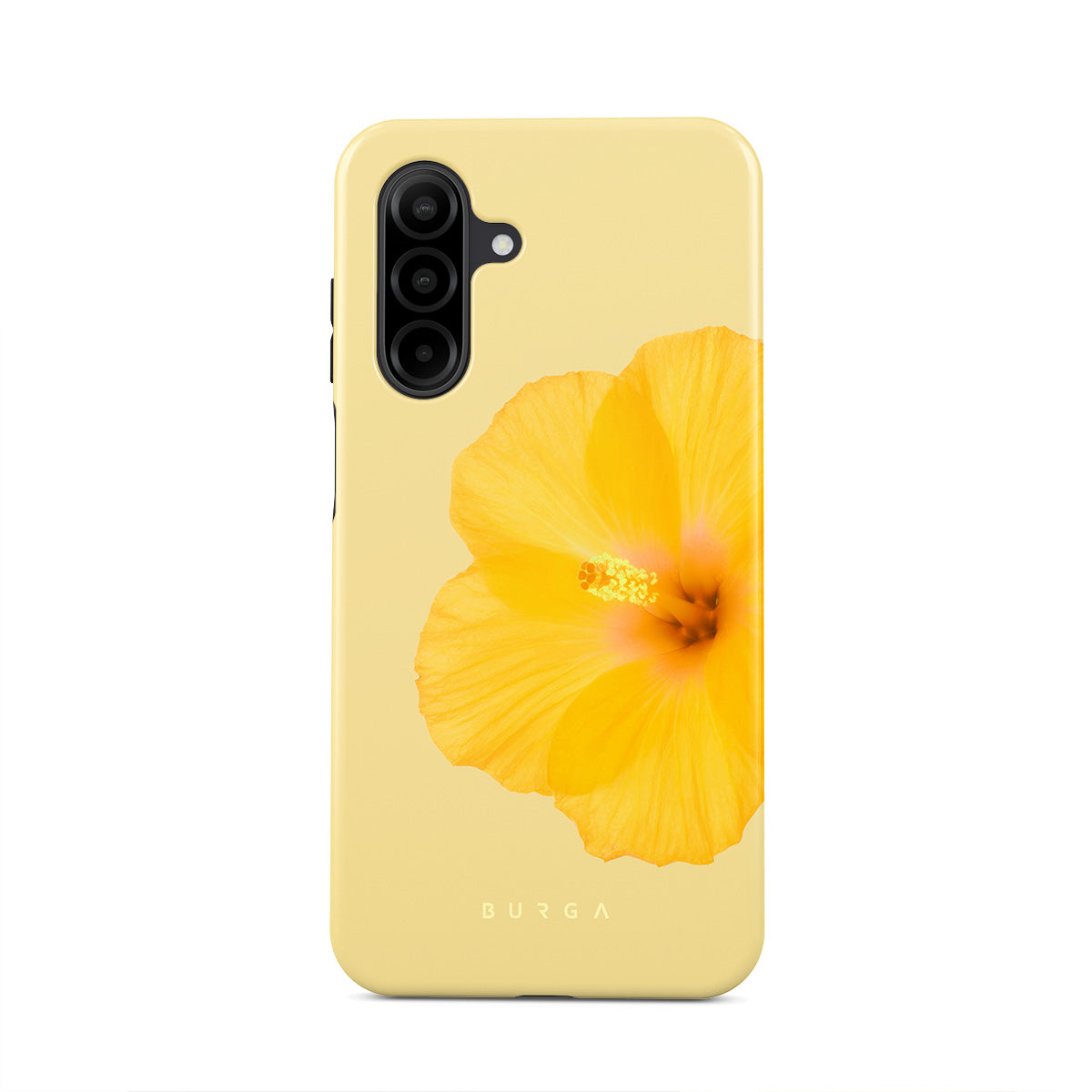 Our bright yellow Samsung Galaxy A26 5G phone case features bold, beautiful flowers that evoke a sense of nostalgia and happiness. This cheerful floral design captures the essence of joyful moments, making your device a reminder of sunny memories. Perfect for brightening up your day.