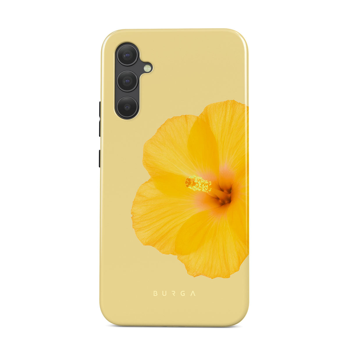 Our bright yellow Samsung Galaxy A34 phone case features bold, beautiful flowers that evoke a sense of nostalgia and happiness. This cheerful floral design captures the essence of joyful moments, making your device a reminder of sunny memories. Perfect for brightening up your day.