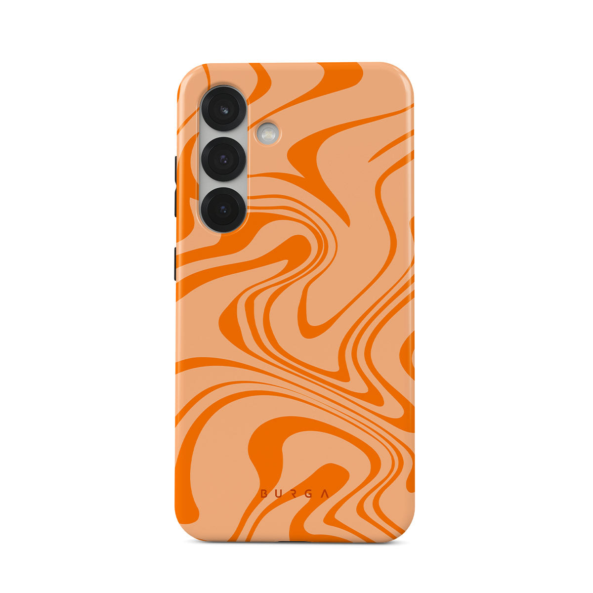 Add some retro vibes to your modern device with our High Vibrations Samsung Galaxy S25 Plus phone case. Bright orange allows the darker color swirls to release all that groove energy! This cheerful design is a true showstopper.