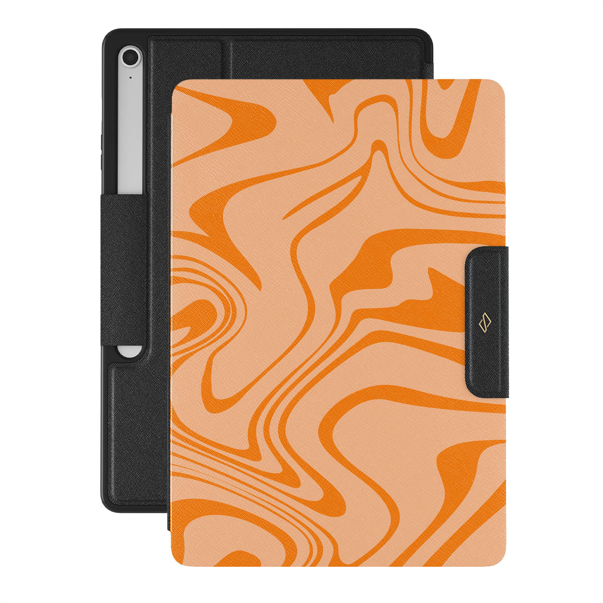 Add some retro vibes to your modern device with our High Vibrations Samsung Galaxy Tab S10+ FE folio case. Bright orange allows the darker color swirls to release all that groove energy! This cheerful design is a true showstopper.