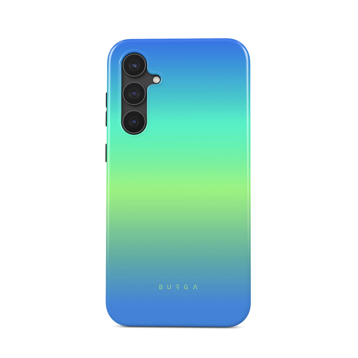 Experience the magic where seas merge with our Horizon design. Crafted for those who love the sea's dynamic beauty, this Samsung Galaxy S23 FE phone case pattern displays a beautiful blend from deep blue to vibrant green.