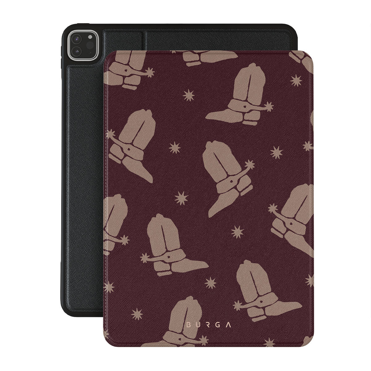 Say Howdy to this charming iPad Pro 12.9 (6th/5th Gen) folio case design. Cowboy boots and stars dance across a deep brown background, celebrating the essence of western life. Perfect for those who embrace their free spirit.