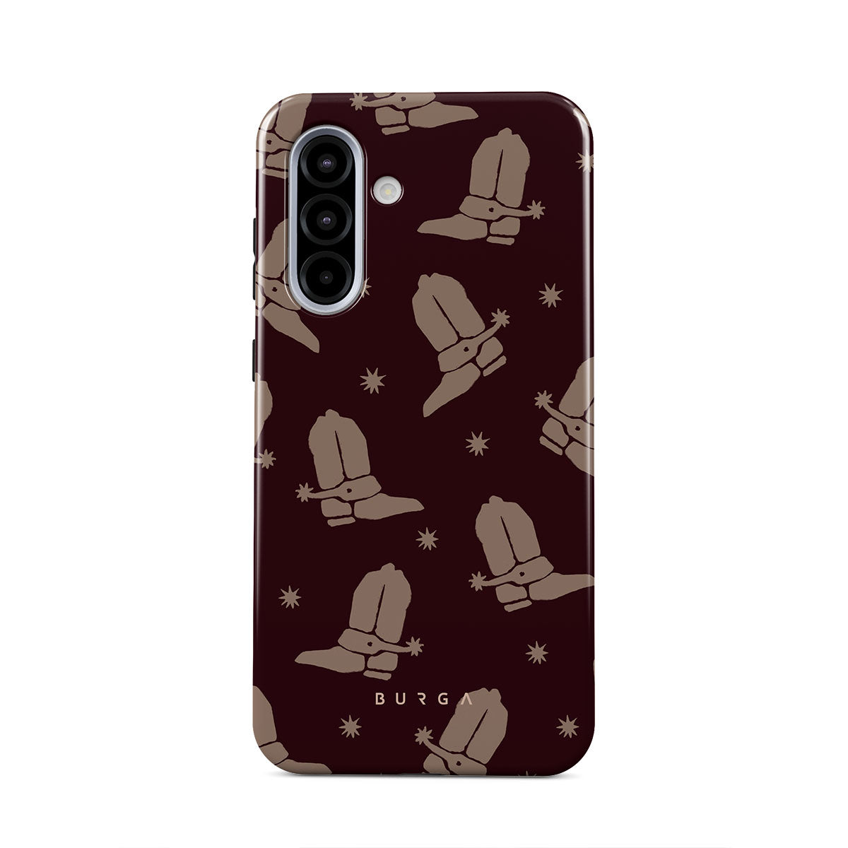 Say Howdy to this charming Samsung Galaxy A56 5G phone case design. Cowboy boots and stars dance across a deep brown background, celebrating the essence of western life. Perfect for those who embrace their free spirit.