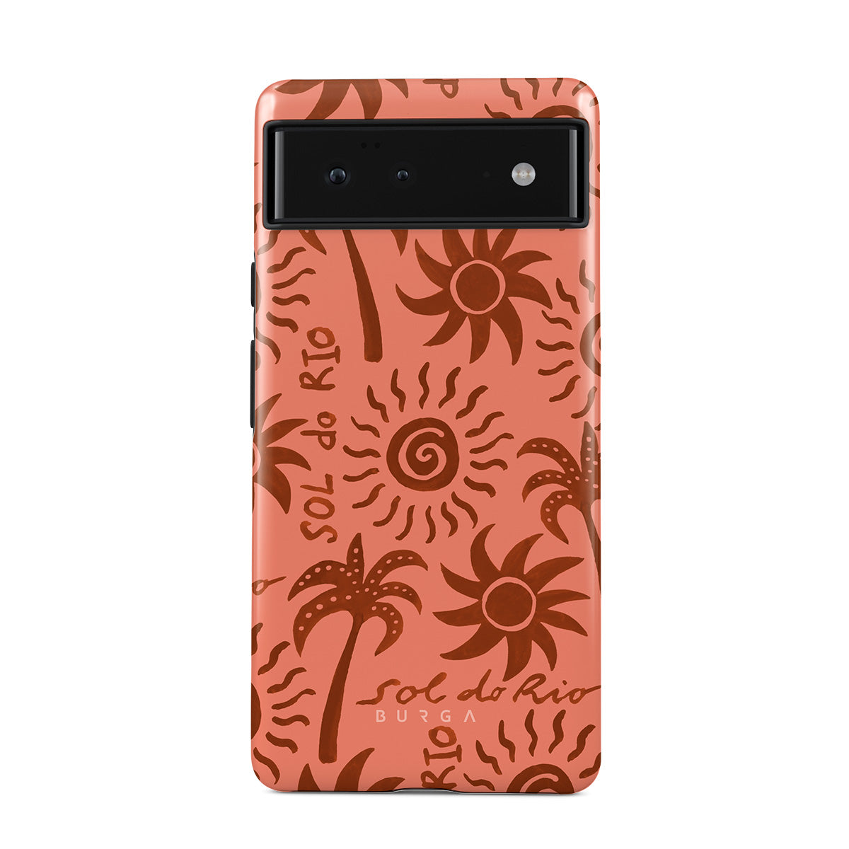 Drawn in the sand with someone’s leftover popsicle stick. Scribbly symbols and a sunburned palette that whisper “let’s not go back yet.” That's the Ipanema Google Pixel 6a phone case design.