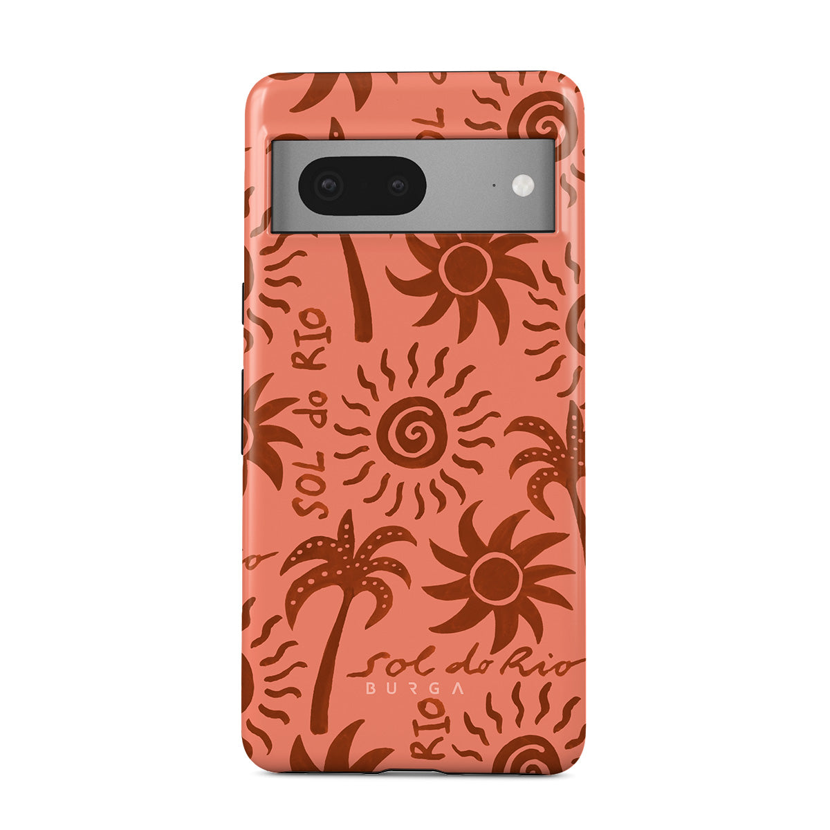 Drawn in the sand with someone’s leftover popsicle stick. Scribbly symbols and a sunburned palette that whisper “let’s not go back yet.” That's the Ipanema Google Pixel 7 phone case design.