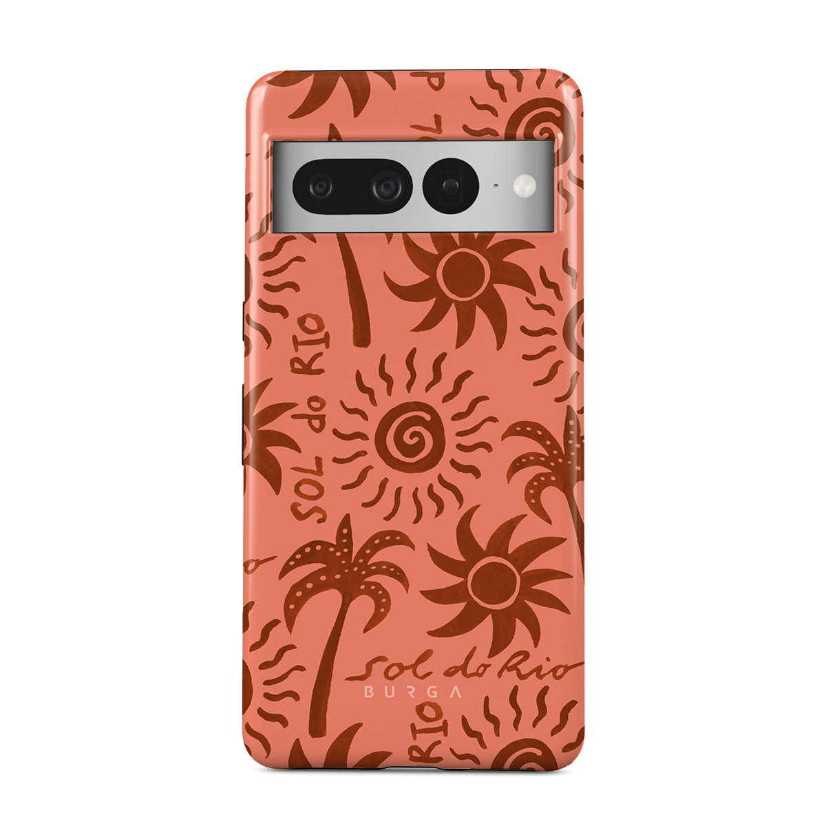 Drawn in the sand with someone’s leftover popsicle stick. Scribbly symbols and a sunburned palette that whisper “let’s not go back yet.” That's the Ipanema Google Pixel 7 Pro phone case design.