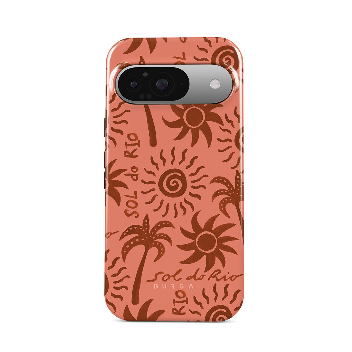 Drawn in the sand with someone’s leftover popsicle stick. Scribbly symbols and a sunburned palette that whisper “let’s not go back yet.” That's the Ipanema Google Pixel 9 phone case design.