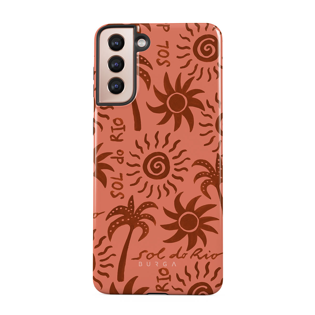 Drawn in the sand with someone’s leftover popsicle stick. Scribbly symbols and a sunburned palette that whisper “let’s not go back yet.” That's the Ipanema Samsung Galaxy S21 Plus phone case design.