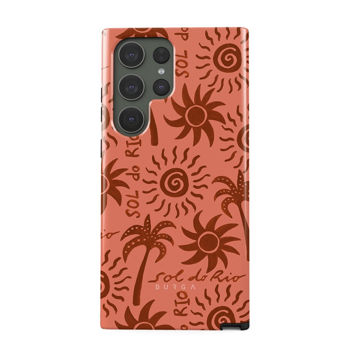 Drawn in the sand with someone’s leftover popsicle stick. Scribbly symbols and a sunburned palette that whisper “let’s not go back yet.” That's the Ipanema Samsung Galaxy S23 Ultra phone case design.
