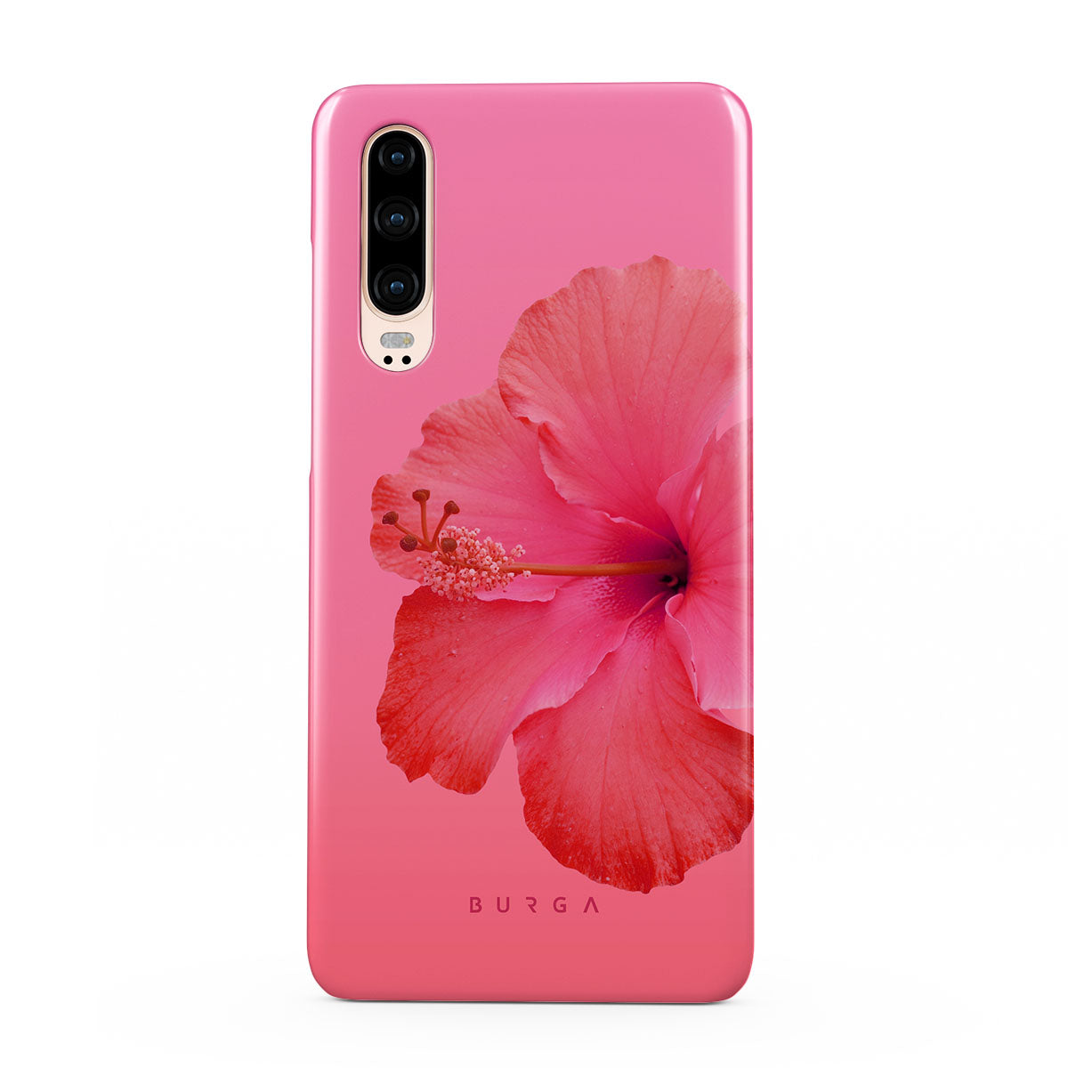 Our Island Girl Huawei P30 phone case design bursts with the fiery red of a hibiscus in full bloom against a dreamy pink backdrop. Perfect for those who embody the spirit of a sun-kissed island retreat.