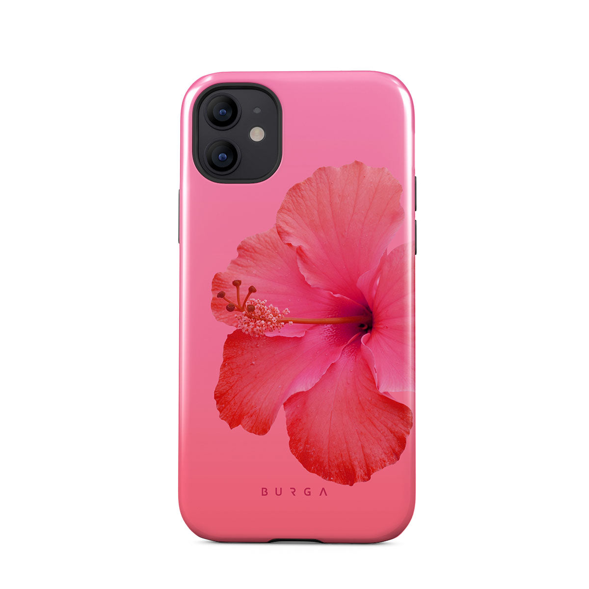 Our Island Girl iPhone 12 phone case design bursts with the fiery red of a hibiscus in full bloom against a dreamy pink backdrop. Perfect for those who embody the spirit of a sun-kissed island retreat.