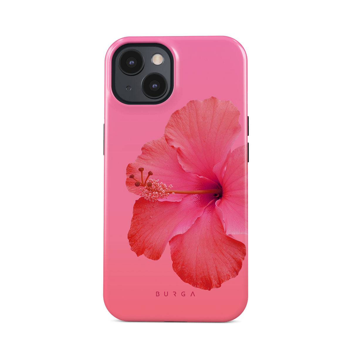 Our Island Girl iPhone 13 phone case design bursts with the fiery red of a hibiscus in full bloom against a dreamy pink backdrop. Perfect for those who embody the spirit of a sun-kissed island retreat.