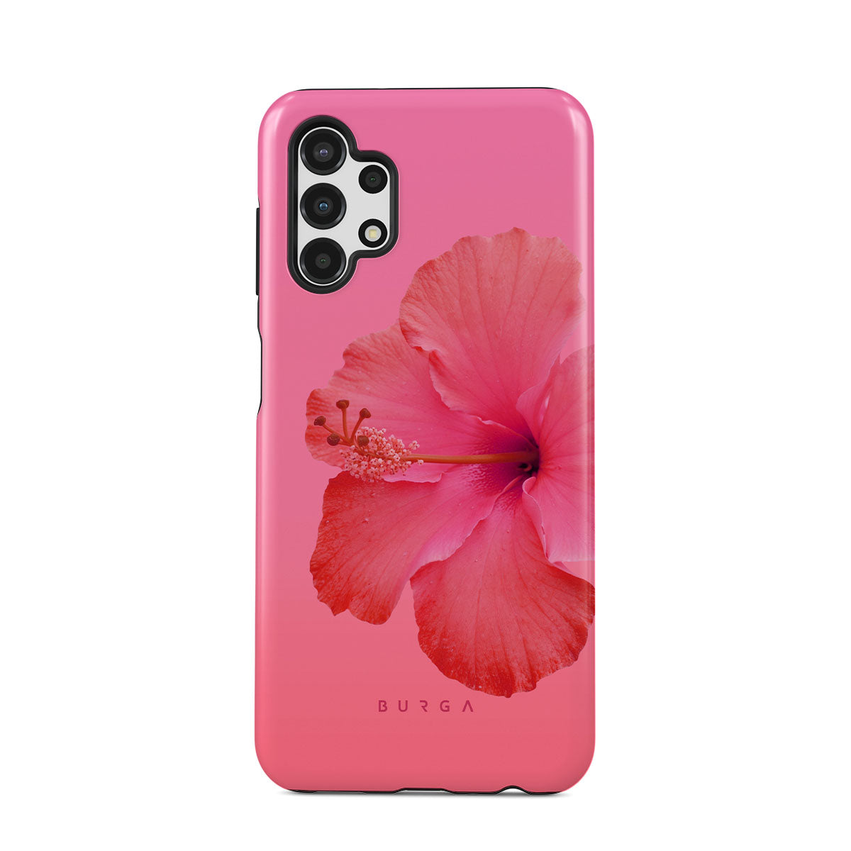 Our Island Girl Samsung Galaxy A13 4G phone case design bursts with the fiery red of a hibiscus in full bloom against a dreamy pink backdrop. Perfect for those who embody the spirit of a sun-kissed island retreat.