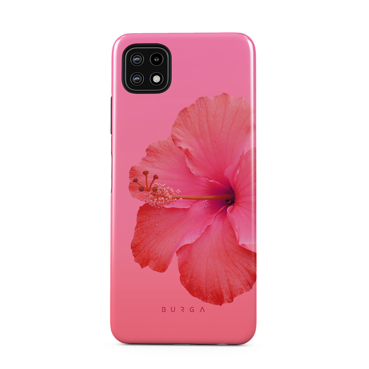 Our Island Girl Samsung Galaxy A22 5G phone case design bursts with the fiery red of a hibiscus in full bloom against a dreamy pink backdrop. Perfect for those who embody the spirit of a sun-kissed island retreat.