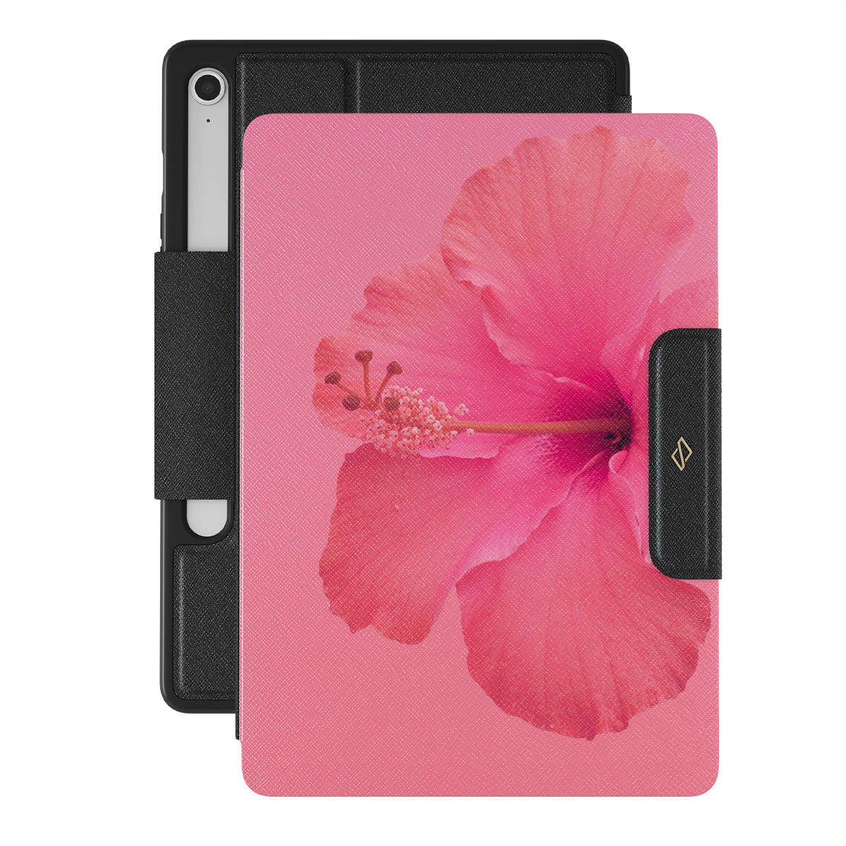 Our Island Girl Samsung Galaxy Tab S10 FE folio case design bursts with the fiery red of a hibiscus in full bloom against a dreamy pink backdrop. Perfect for those who embody the spirit of a sun-kissed island retreat.