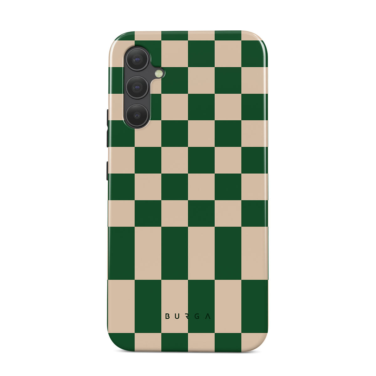 Feel prestigious, expensive, and sophisticated with our Ivy League - Samsung Galaxy A34 phone case. Green and white colors are the way to go, so we added a bit of cream to soften the color scheme and combined it with a checkered pattern to create a breathtaking design that just shouts about being the best! Falling in love with a protective phone case was never this easy.