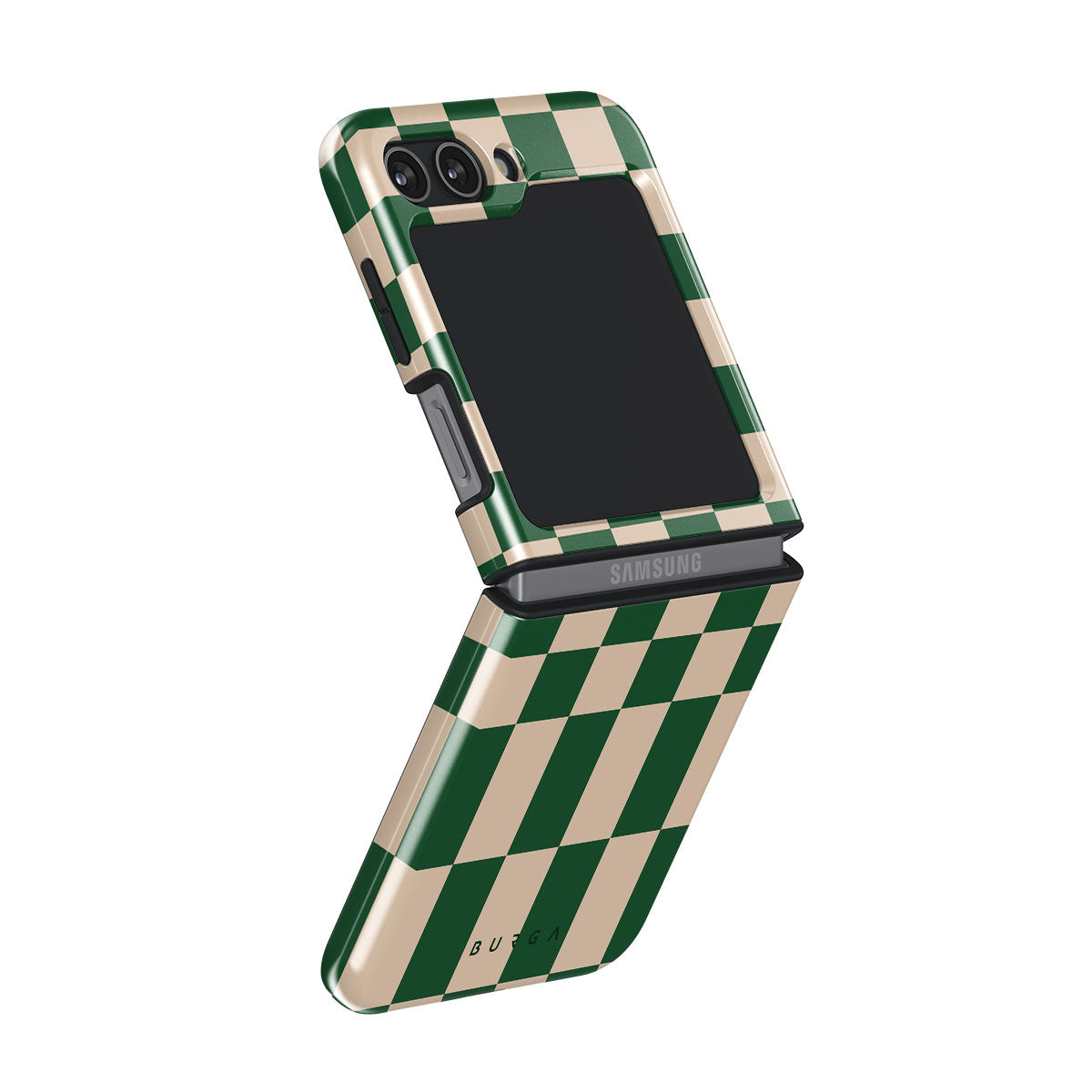 Feel prestigious, expensive, and sophisticated with our Ivy League - Samsung Galaxy Z Flip 5 phone case. Green and white colors are the way to go, so we added a bit of cream to soften the color scheme and combined it with a checkered pattern to create a breathtaking design that just shouts about being the best! Falling in love with a protective phone case was never this easy.