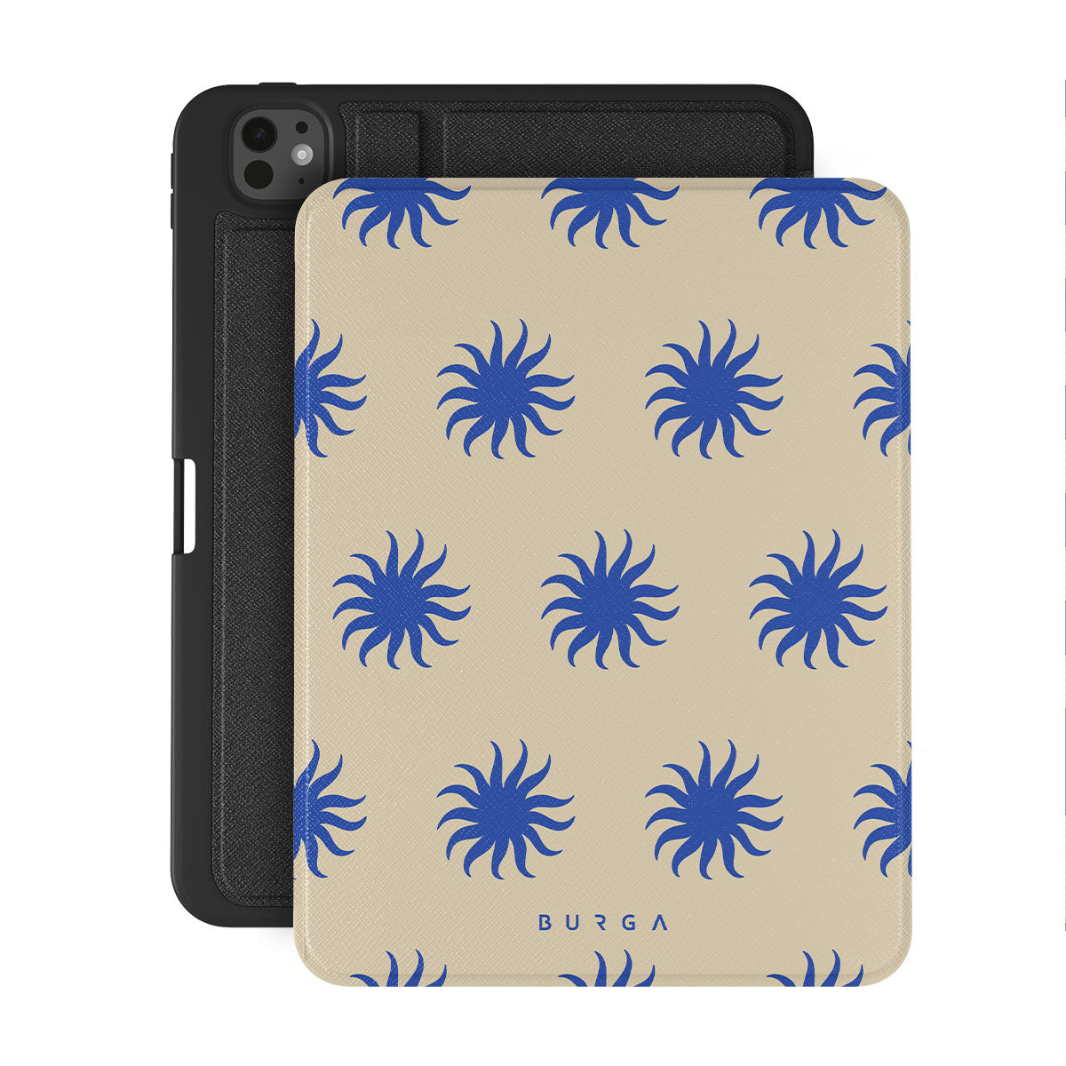 Immerse yourself in the vibrant spirit of the tropics with our La Playa iPad Pro 11 (8th/7th Gen) folio case. This design boasts a warm, sandy beige base highlighted by striking blue motifs, reminiscent of the breezy Caribbean islands. It’s a stylish celebration of coastal beauty.