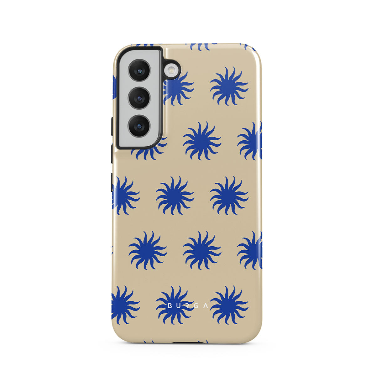 Immerse yourself in the vibrant spirit of the tropics with our La Playa Samsung Galaxy S22 Plus phone case. This design boasts a warm, sandy beige base highlighted by striking blue motifs, reminiscent of the breezy Caribbean islands. It’s a stylish celebration of coastal beauty.