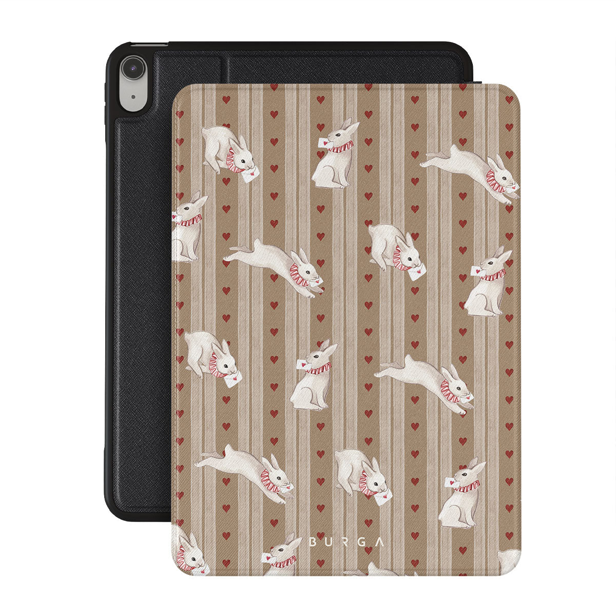The Late Again folio case design is a love letter lost in time—scattered hearts, hurried notes, and white rabbits racing against a clock that refuses to be tamed. Sent, but never received. Read, but never answered. Always running, always chasing, always just a moment too late.