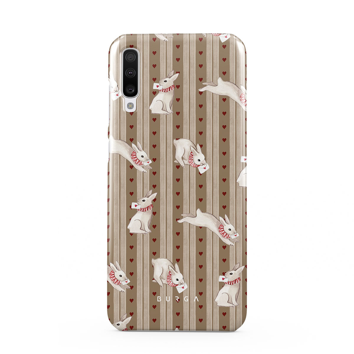 The Late Again Samsung Galaxy A70 phone case design is a love letter lost in time—scattered hearts, hurried notes, and white rabbits racing against a clock that refuses to be tamed. Sent, but never received. Read, but never answered. Always running, always chasing, always just a moment too late.
