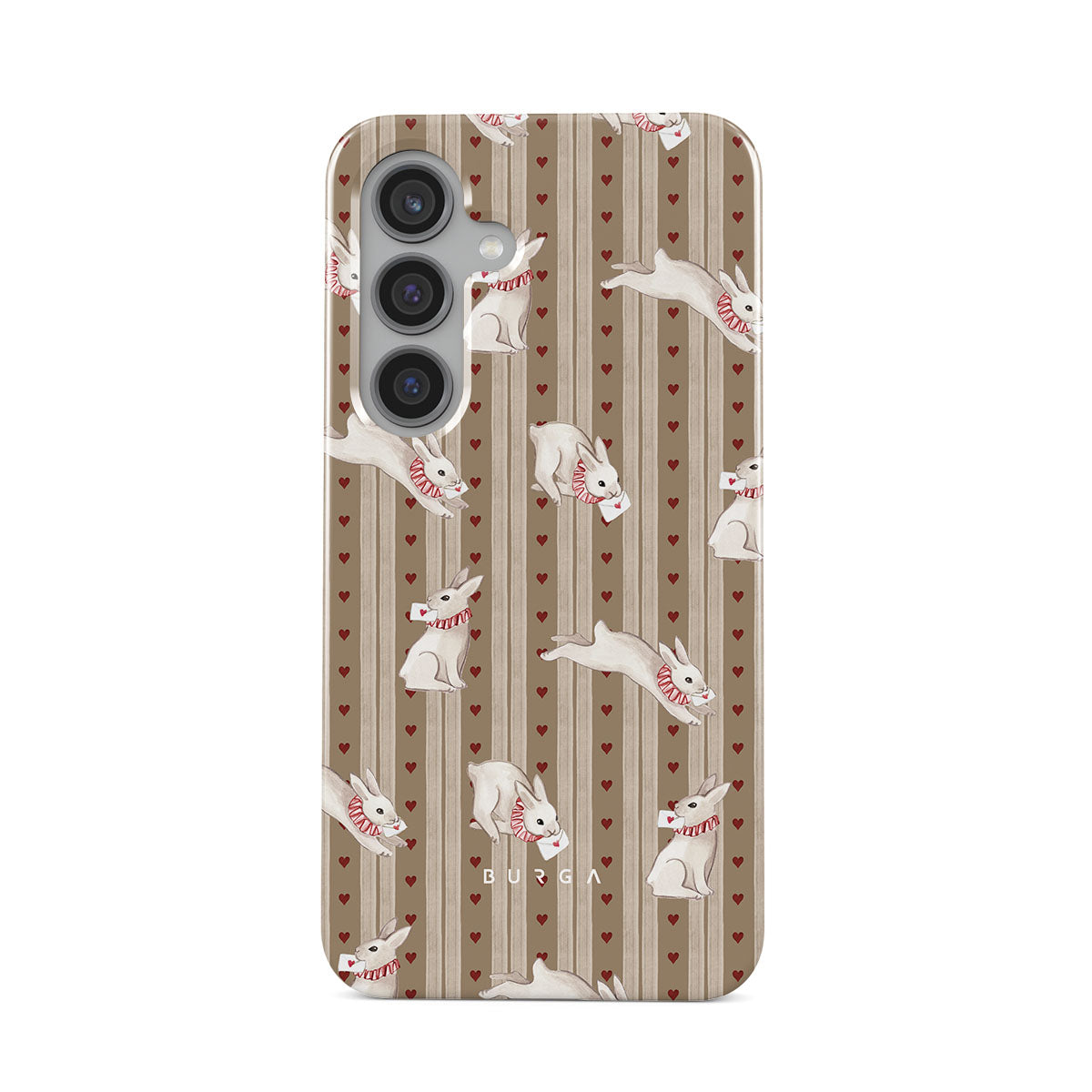 The Late Again Samsung Galaxy S24 FE phone case design is a love letter lost in time—scattered hearts, hurried notes, and white rabbits racing against a clock that refuses to be tamed. Sent, but never received. Read, but never answered. Always running, always chasing, always just a moment too late.