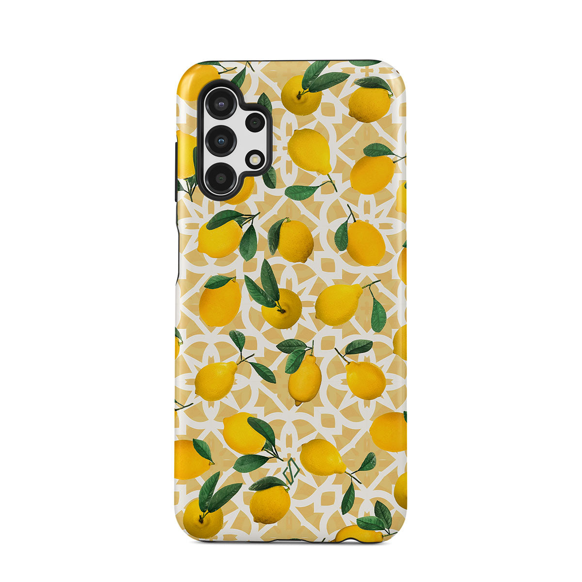 Freshly squeezed, freshly made drops in water, in your tea, and the scent that gives the energy for the rest of the day. Feel that energy with our Lemon Juice Samsung Galaxy A13 4G phone case made with a bright yellow lemons pattern that catches the eye. Let your phone become an energy beacon for your day!