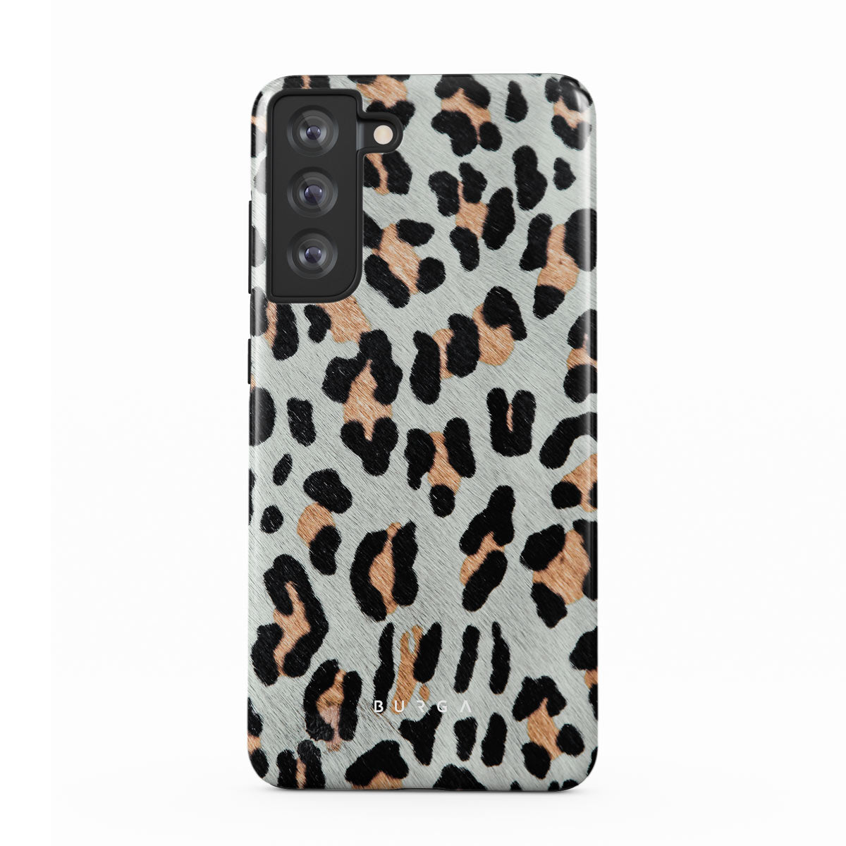 Make your Samsung Galaxy S21 FE phone case a statement piece with our Baby Leo design. The timeless leopard print is reimagined on a beautiful pastel blue background. Now you can protect your phone in style.