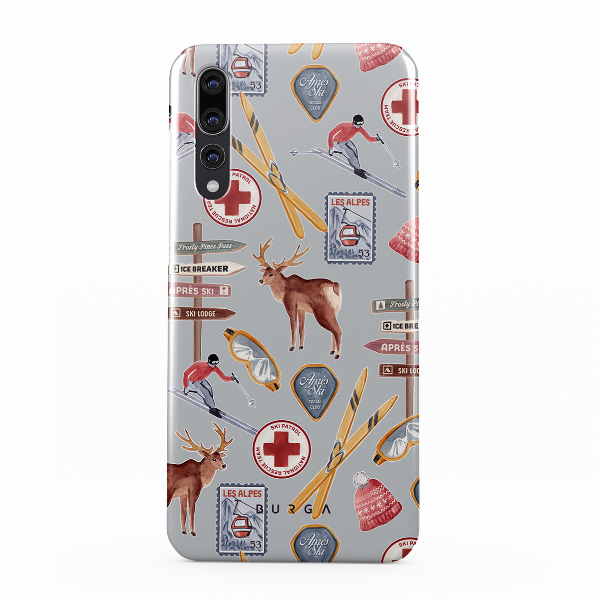 A vintage ski poster straight from your dad's college dorm. A Huawei P20 phone case design dripping with nostalgia.