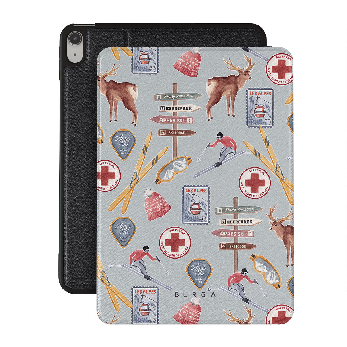 A vintage ski poster straight from your dad's college dorm. A iPad 10.9 (A16/10th Gen) folio case design dripping with nostalgia.