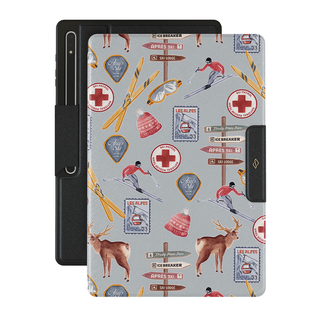 A vintage ski poster straight from your dad's college dorm. A Samsung Galaxy Tab S8 Ultra folio case design dripping with nostalgia.
