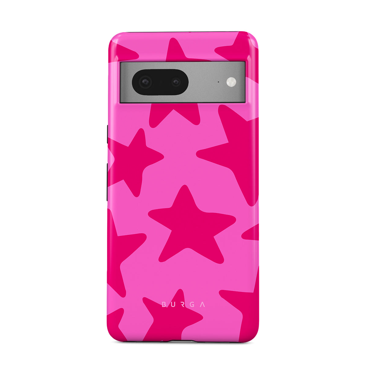 Indulge in a heavenly playground where stars engage in a captivating cosmic game of tag. Enjoy a celestial carnival and fashion fantasy dipped in a sugar-rush of pink. Live the Paradise City dream with our Let's Go Party Google Pixel 7 phone case and flaunt your style.