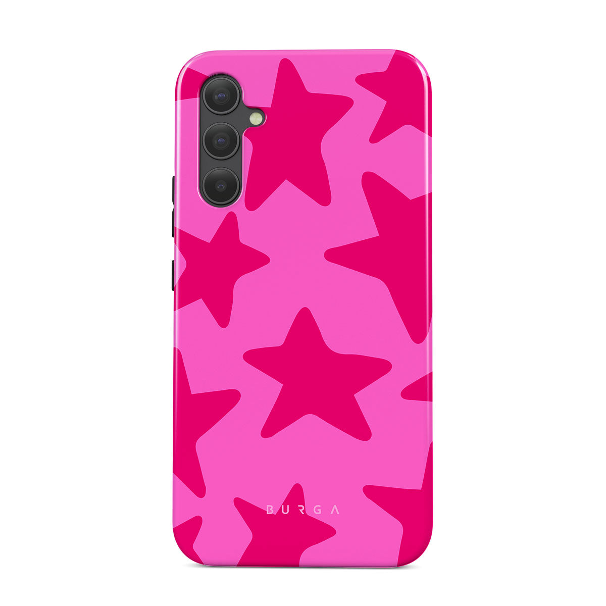 Indulge in a heavenly playground where stars engage in a captivating cosmic game of tag. Enjoy a celestial carnival and fashion fantasy dipped in a sugar-rush of pink. Live the Paradise City dream with our Let's Go Party Samsung Galaxy A34 phone case and flaunt your style.
